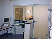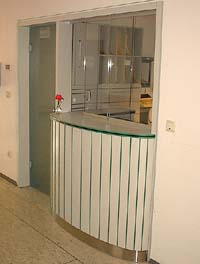 Anmeldung und Empfang in der Röntgenstation. Farbenspiele lockern die Korbbogenfront auf ... |